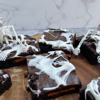 Using your fingers, pick up a little bit of the melted marshmallows and stretch it across the brownies to make it look like a spider web. Repeat until the brownies are covered to your liking. See my TikTok tutorial for instructions.